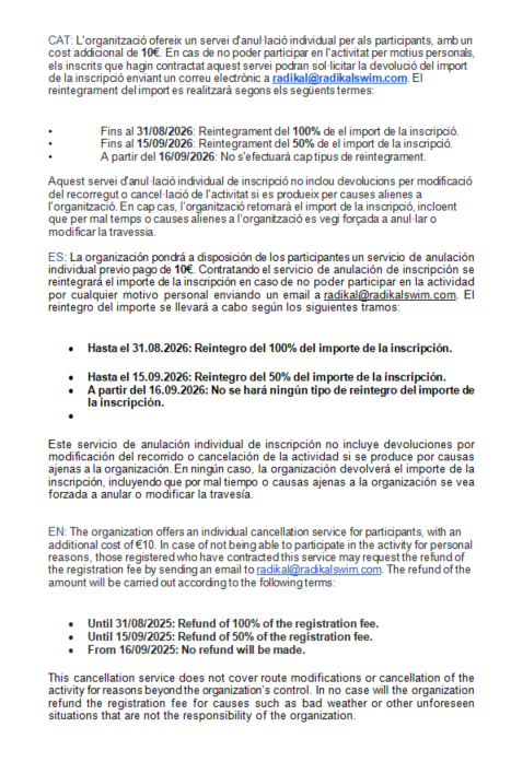 La contractació de la inscripció a aquest esdeveniment lúdic/esportiu a Chip Timing S.L. en nom de l'Organitzador, suposa l'acceptació del reglament de la cursa i de les següents condicions: