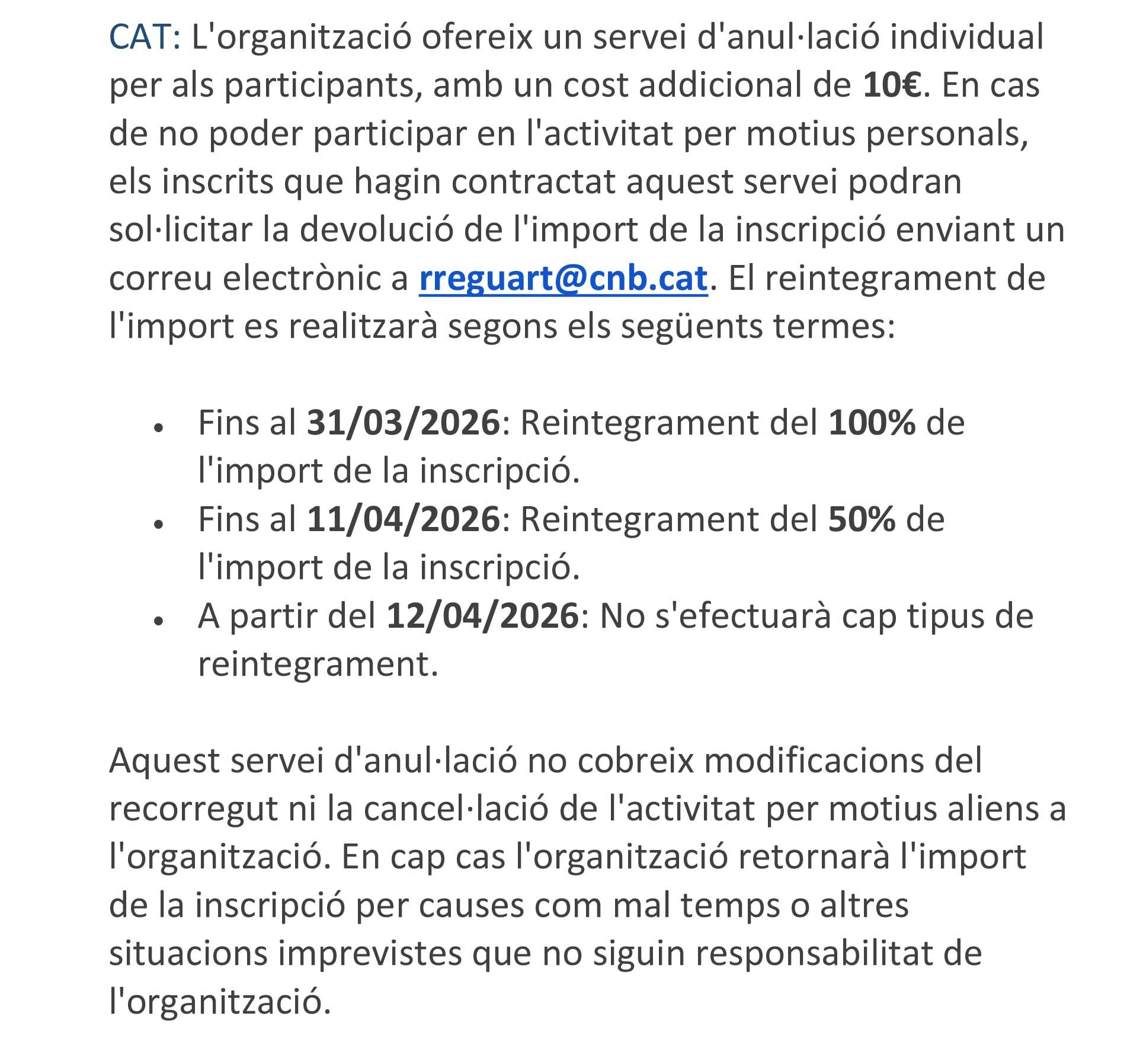 La contractació de la inscripció a aquest esdeveniment lúdic/esportiu a Championchip Cat S.L. en nom de l'Organitzador, suposa l'acceptació del reglament de la cursa i de les següents condicions: