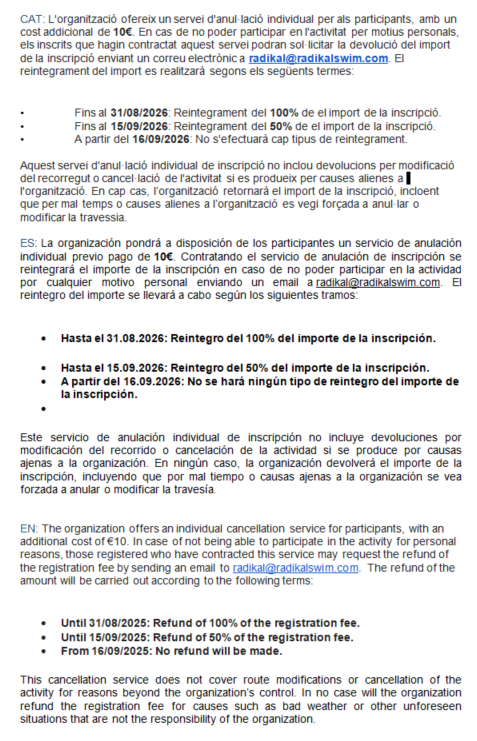 La contratación de la inscripción a este evento lúdico/deportivo a Chip Timing S.L. en nombre del Organizador, supone la aceptación del reglamento de la carrera y de las siguientes condiciones: